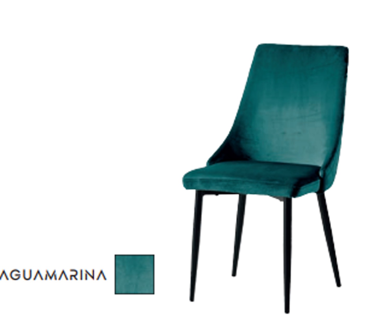 Silla Penelope tapizado terciopelo velvet. Estructura de patas metálicas en negro. Trasera de respaldo tapizado dibujando rombos Medidas ancho 57 x fondo 51 x alto 92