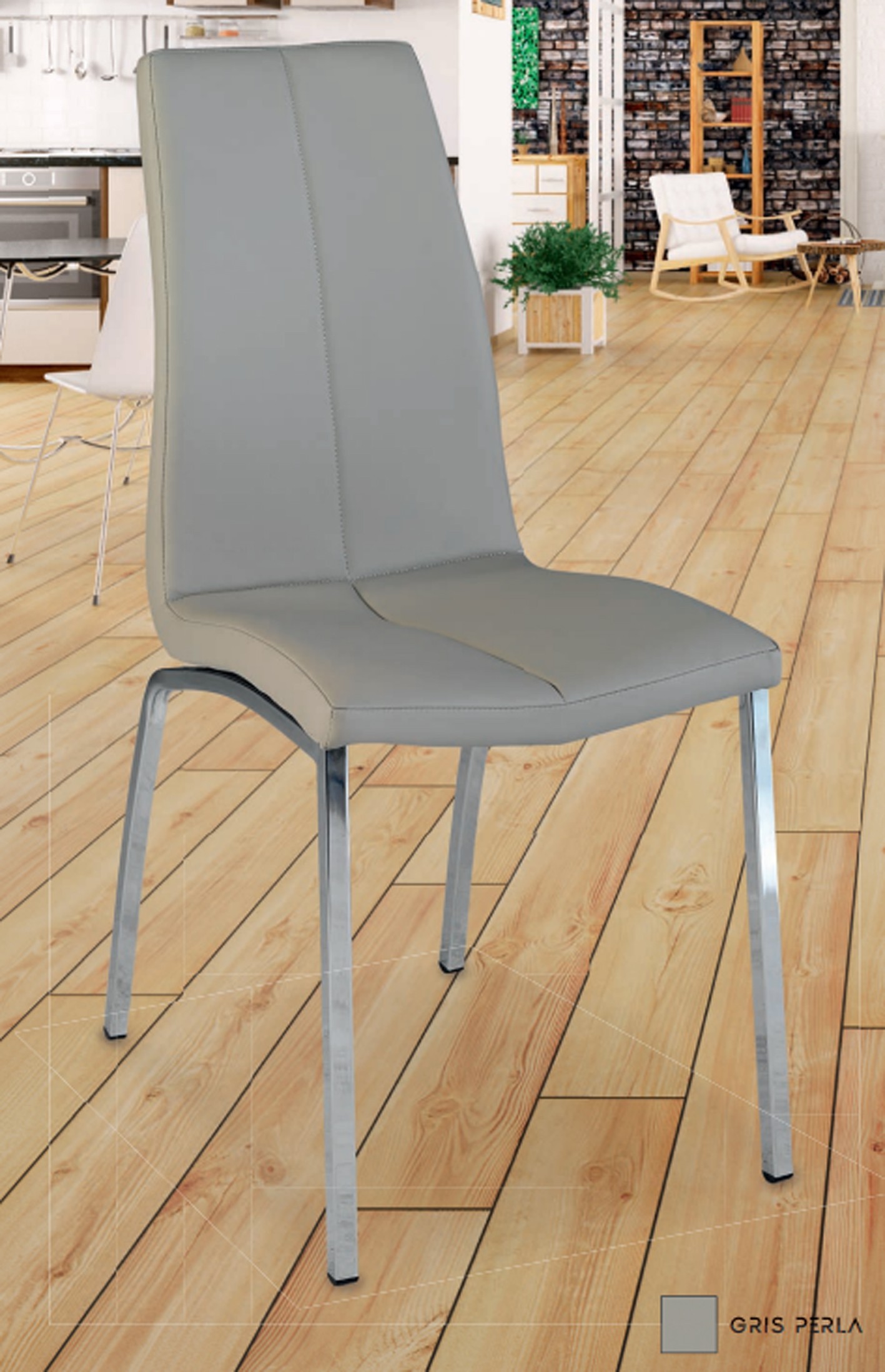 Silla tapizado polipiel GRIS PERLA Estructura de patas montada y soldadas en tubo metálico cuadrado y cromadas Medidas ancho 44 fondo 57 x alto 95