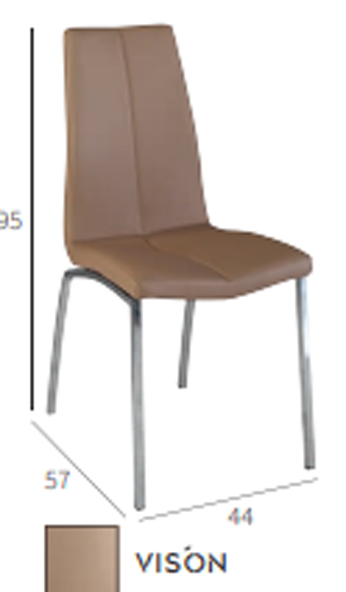 Silla tapizado polipiel VISON Estructura de patas montada y soldadas en tubo metálico cuadrado y cromadas Medidas ancho 44 fondo 57 x alto 95