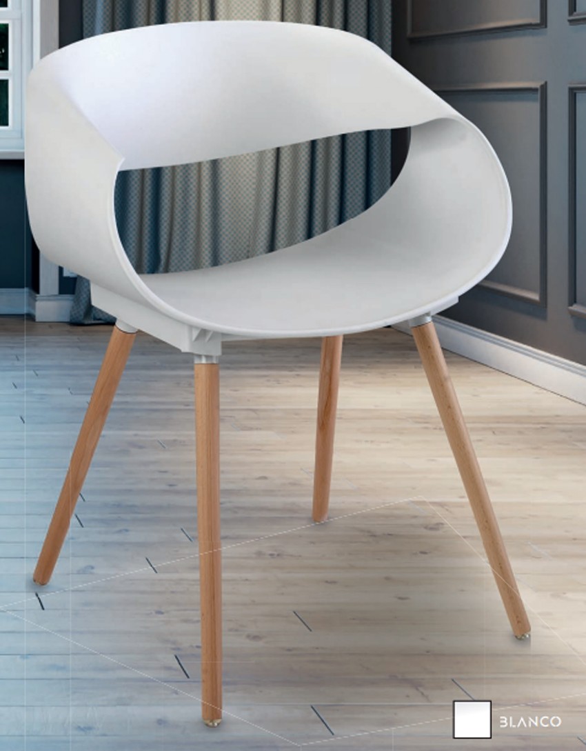 Sillón polipropileno BLANCO, diseño moderno con máximo confort, patas acabado haya con estructura metálica medidas ancho 63 x fondo 54 x alto73