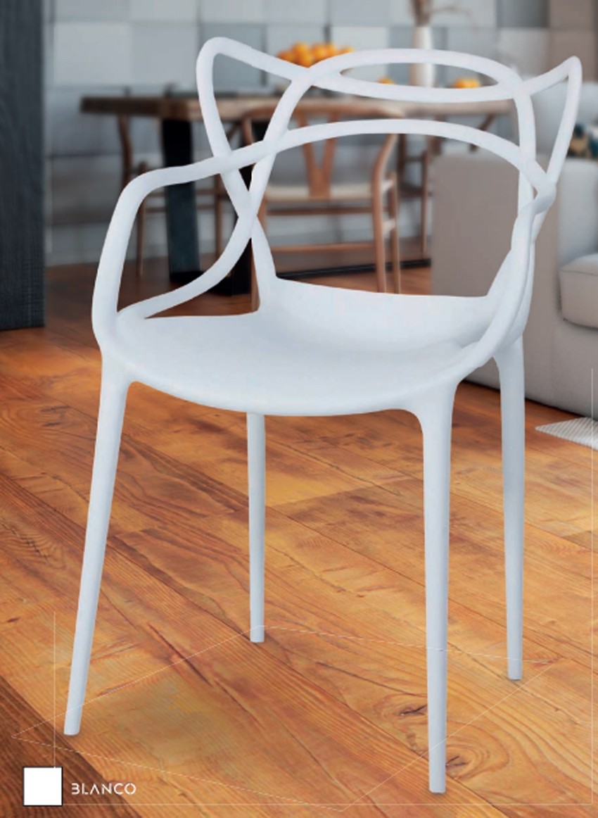 Sillón moderno VENUS en polipropileno BLANCO. Uso interior o exterior. APILABLE medidas ancho 57 x fondo 54 x alto 82